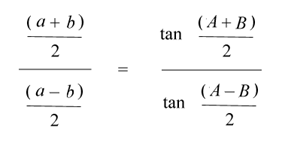 Vieta also made contributions towards trigonometry. Vieta thought of trigonometry as an independent branch of mathematics (Boyer, HM, p. 338). Vieta in 1579 prepared extensive tables of the six functions for angles to the nearest minute (Boyer, HM, p. 338). In Variorum de rebus mathematicis, Vieta makes a statement that is equivalent to the law of tangents (Boyer, HM, p. 339):