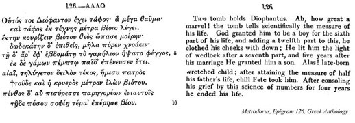 The exact time of Diophantus's life is very uncertain. James Gow estimates that Diophantus lived in the first half of the fourth century, while Thomas Heath's estimation falls at approximately 250 AD, which is relatively close to Gow's estimate. A third mathematical historian, Wilbur Knorr, cautiously estimates Diophantus's dates to have been in the first half of the third century (187), which matches Heath's estimation more closely than Gow's. Gow's estimation was derived from an epigram concerning Diophantus' age which placed him before 330 AD (Gow 100). He also used the work of later scholars, like Theon and Theon's daughter Hypatia, to show that Diophantus' dates did not go beyond this time. However, he also considers the possibility that Diophantus may have lived much earlier (Gow 101). So, Gow only has an upper bound of Diophantus' dates. Heath, on the other hand, first considered 150 BC as a lower bound to Diophantus' dates, based on Diophantus' reference to work by Hypsicles who preceded him (Heath D 2), then raised that lower bound to about 250 AD after considering a letter which showed that Diophantus and Anatolius once worked together when writing on "the Egyptian method of reckoning." (Heath D 2) Furthermore, Wilbur Knorr concluded Diophantus' dates to be approximately 240 AD, also based on his relationship to Anatolius (187). However, Knorr also allows the possibility of a different Diophantus being associated with Anatolius, which could permit our Diophantus to be placed as early as the first century AD, as a contemporary of Hero (Knorr 184). Ultimately, Knorr concludes that more chronological research is needed to resolve this issue (187). In addition, both Gow and Heath refer to a problem in the form of an epigram presumed to be written about Diophantus after his death, indicating that he was eighty four years old when he died. This epigram, which was composed by Metrodorus, reads as follows: