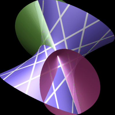 The two families of lines on the smooth quadric are shown.