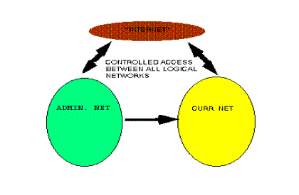 SECTION 5 - SECURITYExternal Threats - Internet Connectivity shall utilize a double firewall implementation with all Internet exposed applications residing on a public backbone network. In this implementation all connections initiated from the Internet into the schools private network will be refused. In the district security model the network will be divided into three (3) logical network classifications, Administrative, curriculum and external with secured interconnections between them.