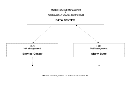SECTION 3 - DISTRICT SUPPIED SERVERS AND FUNCTIONSAll file servers will be catagoized as Enterprise or Workgroup type services then place on the network topology according to function and anticipated traffic patterns of users. DOMAIN NAMES SERVICE and EMAIL SERVICESDomain Name Services (DNS) and E-Mail delivery will be implemented in a hierarchical fashion with all services located on the master server at the district office. Each Hub location will contain a DNS server to support the individual schools serviced out of that location. Each school will also contain a host for DNS and E-mail services (local post office) that will maintain a complete directory of all staff personnel and student population for that location. The school host will be the local post office box and will store all E-mail messages. The update DNS process will flow from the individual school server to the Hub server and to the district server. All regional servers will have the capability to communicate between themselves thus building redundancy in the system in the event that the District master server is unavailable. Should the District master server require a partial or complete restore of data, the ability to query any or all of the regional servers to aquire the needed information will be provided.ADMINISTRATIVE SERVERThe school district is moving towards a totally automated server based administration system.Each school location will contain an Administration server which will house the student tracking, attendance, grading and other administration functions. This server will be running TCP/IP as its OSI layer 3&4 protocols and will only be made avalible to teachers and staff.LIBRARY SERVERThe school district is implementing an automated library information and retrieval system which will house an online library for curricular reseach purposes. This server will be running TCP/IP as its OSI layer 3&4 protocols and will made available to anyone at the school site.APPLICATION SERVERAll computer applications will be housed in a cenrtal server at each school location. As applications such as Word processing, Excel, PowerPoint , etc are requested by users these applications will be retrieved from the application server. This will provide district support staff with a easy and efficient method for upgrading applications without having to reload new software on each computer in the district network. This server will use TCP/IP as its OSI layer 3&4 protocols and will be made available to anyone at the school site.OTHER SERVERSAny other servers implemented at the school sites will be considered departmental (workgroup) servers and will be placed according to user group access needs. Prior to implementation of other servers a requirements analysis must be submitted for the purpose of determining placement of the server on the district network.SECTION 4 - ADDRESSING AND NETWORK MANAGEMENTA complete TCP/IP addressing and naming convention scheme for all host, servers and network interconnect devices will be developed and administered by the District Office. The implementation of unauthorized addresses will be prohibited. All computers located on the administrative networks will have static address, curriculum computers will obtain addresses by utilizing Dynamic Host Configuration Protocol (DHCP). A master network management host will be established at the District Office and will have total management rights over all devices in the network. This host will also serve as the router configuration host and maintain the current configurations of all routers in the network. Each region location will house a regional network management host to support its area. The management scheme for the data portion of the network will be based on the Simple Network Management Protocol (SNMP) standards. All routers will be pointed to the master Network Management host for the purpose of downloading new or existing configurations. The District Office will maintain the super user passwords for all network devices and configuration changes on these devices will be authorized from the District Office: i.e. Routers and Lan Switches.