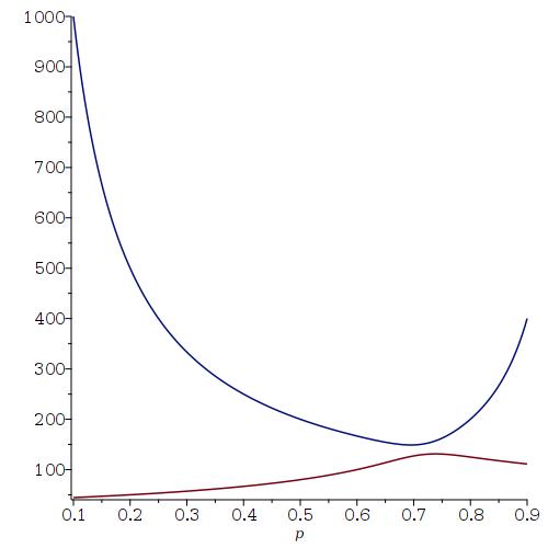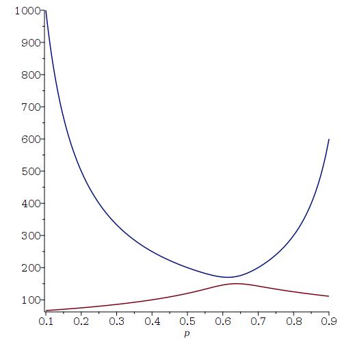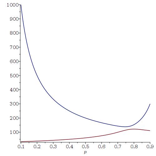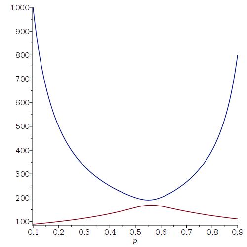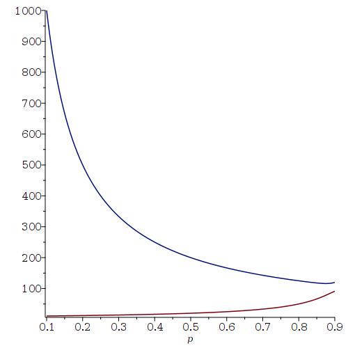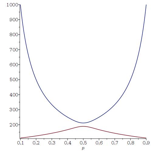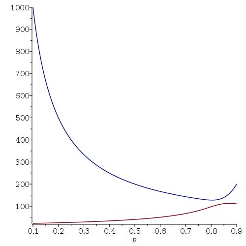 If you want to see a plot of the expected family size as a function of the Probability of having a boy (from 0.1 to 0.9) where